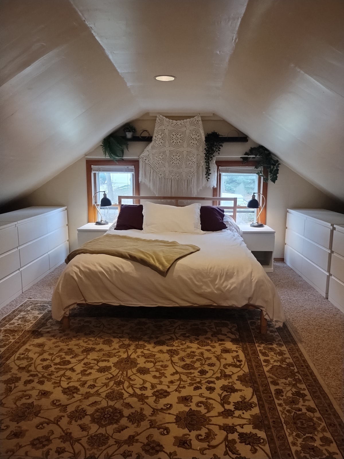 Charmant bungalow hygge de niveau supérieur (maison de 2 unités au total). À dix minutes de partout. Niché dans le paisible village de West Milwaukee. Plein de lumière naturelle et décor vintage soigné. À distance de marche de quelques restaurants et bars, ainsi que de l'American Family Field. Profitez d'un cocktail sur le balcon avant et admirez le coucher de soleil tout en vous adonnant à une collection de vinyles classiques. Petit balcon à côté de la cuisine pour regarder le lever du soleil et déguster une tasse de café. Parfait pour l'aventure ou la détente.