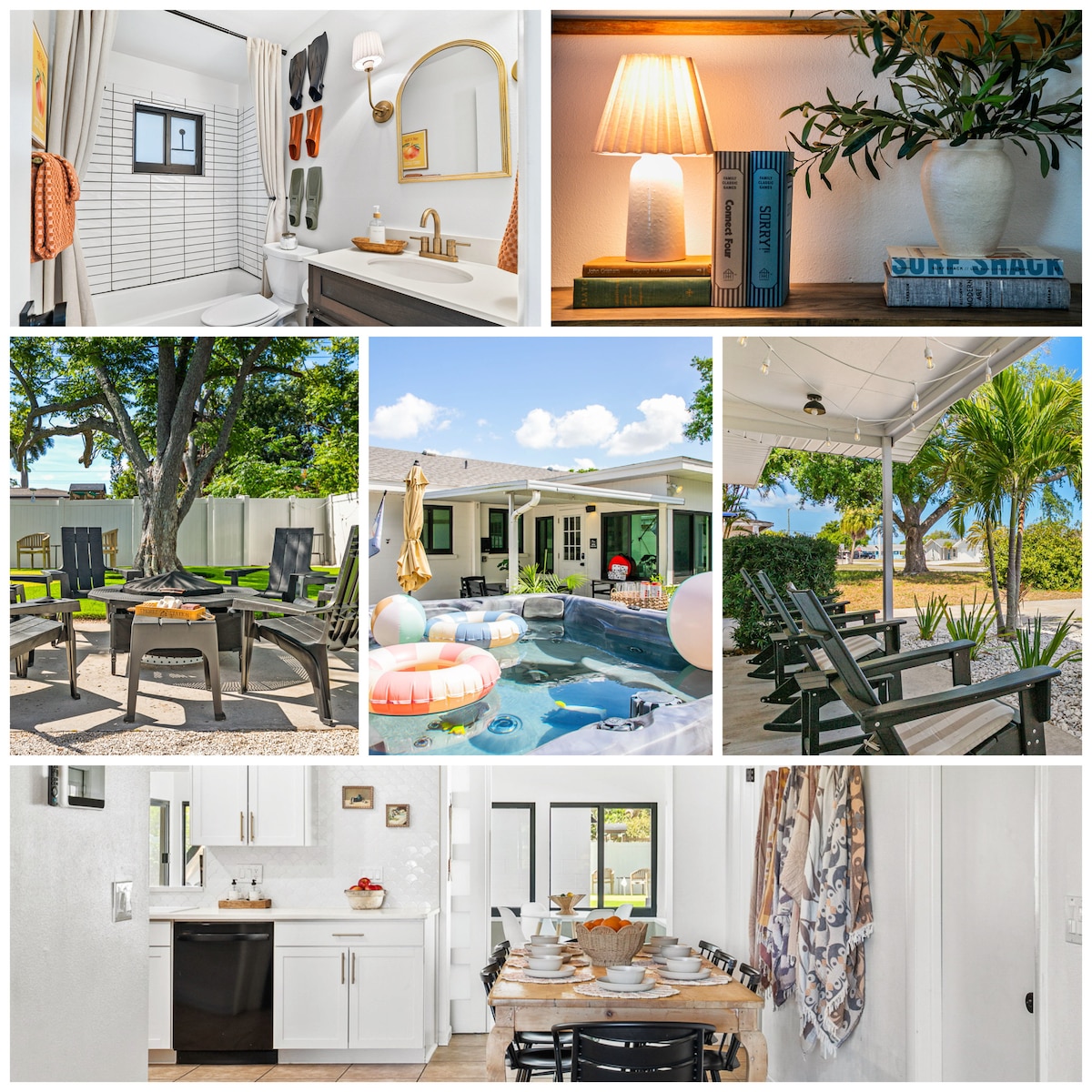 Profitez de votre petit coin de paradis à l'Orange Oasis magnifiquement décorée ! 3 chambres et 2 salles de bain, plus un lit de jour avec matelas d'appoint. Piscine chauffée. Wifi haut débit et 4 téléviseurs, tous avec Hulu, Apple TV, Disney+ et ESPN. Plafond voûté, douche à effet pluie, lave-linge et sèche-linge, grand jardin clos, piscine, parking dans le garage, barbecue Weber et un quartier calme et sûr. La maison est entièrement approvisionnée en sacs Ziploc, essentiels de cuisine, café, essentiels de plage et jeux d'extérieur/d'intérieur.