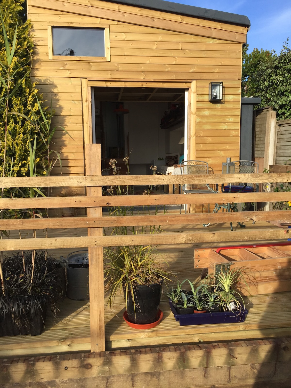 Un studio unique très lumineux avec des lits pour 5 personnes(en famille ou en couple). Bien situé/grand accès aux plages locales, à 14 min en voiture de Salcombe, Bantham, Bigbury, Hope Cove, à 25 min de Totnes/train de Londres. Wifi, TV, DVD. Paisible et calme. Le lit double mezzanine est en haut d'une échelle raide et a une hauteur de tête très restreinte donc nécessite une certaine agilité. Les deux nacelles à lit simple sont confortables. La nacelle de lit inférieure; adaptée à un enfant/adolescent a une hauteur de tête restreinte. Il dispose d'un parking gratuit dans la rue