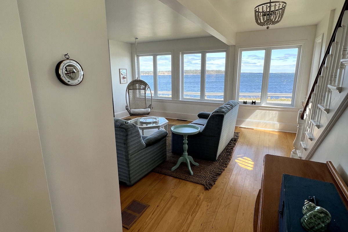 SkyView sur l'île de LaHave est accessible en voiture, construit sur le point culminant d'une île magnifique comme un château sur une colline. Un atrium de 2 étages, de multiples grandes fenêtres et des puits de lumière révèlent des vues spectaculaires à 360 degrés sur des criques pittoresques, une baie tentaculaire et le vaste Atlantique. Profitez de vous prélasser à l'extérieur sur 3 ss avec panneaux vitrés. Internet haut débit. À 5 minutes de la baignade à Crescent Beach, à 7 minutes des activités du continent sur Lighthouse Route, à 40 minutes de Lunenburg. Regardez notre vidéo sur Youtube. Un endroit phénoménal !