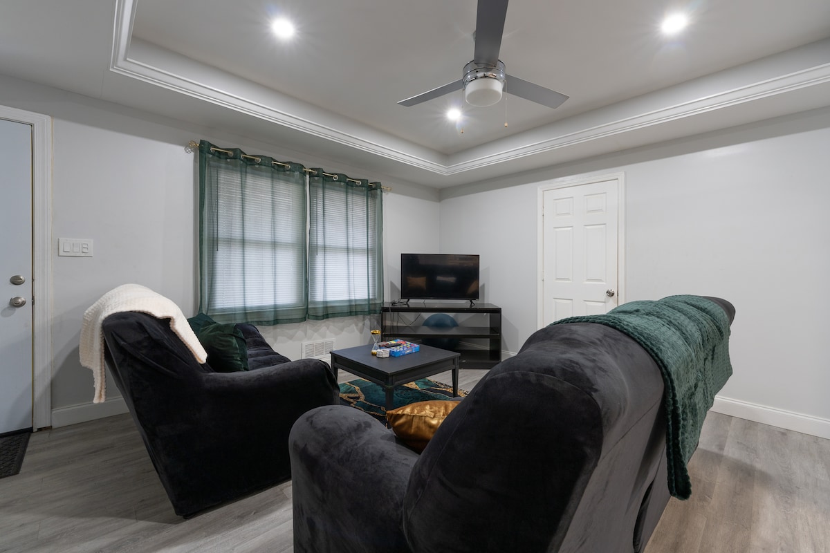 Cette maison élégante est parfaite pour un seul voyageur ou un séjour en groupe. Son design moderne, son mobilier élégant et son lit King Size ultra-confortable en font l'endroit idéal pour séjourner lorsque vous visitez Atlanta. La résidence dispose d'une entrée privée et est séparée de la maison principale ci-dessus. La maison comprend 1 téléviseur à écran plat avec connexion Wi-Fi gratuite, câble, Netflix et d'autres services de streaming. À 15 minutes de Midtown et à 12 minutes de l'aéroport d'Atlanta, c'est l'endroit idéal pour visiter ATL !