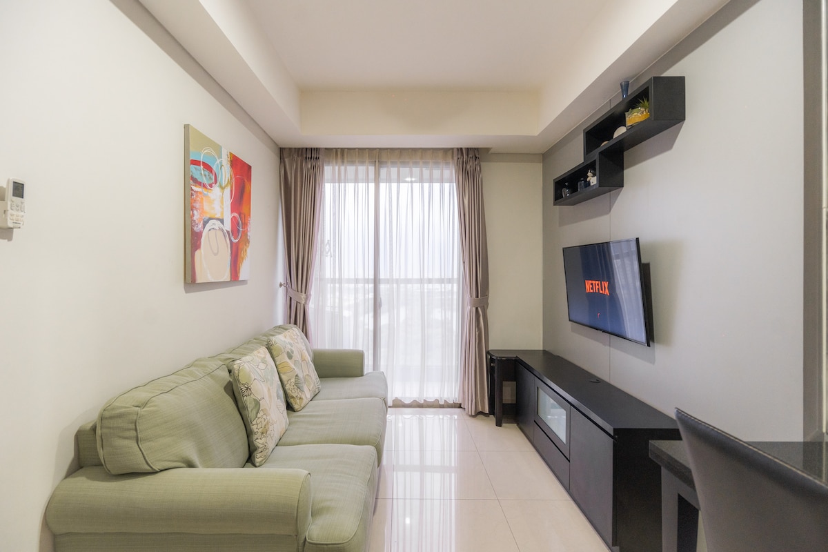A spacious, cozy 1-bedroom apartment with a living room and balcony at Citralake Suites, West Jakarta's ideal lakeside getaway. Conveniently located just minutes from the Airport, PIK, Puri Indah and Sunset Avenue, it’s easy to explore the city. Step outside and you’re just a 1-min walk from Ciffest, a lively dining area with plenty of food options, supermarkets and ATMs. Our 1 BR unit provides a luxurious and comfortable space for up to 3 guests, with a kitchenette, Free Wi-Fi, and Netflix.