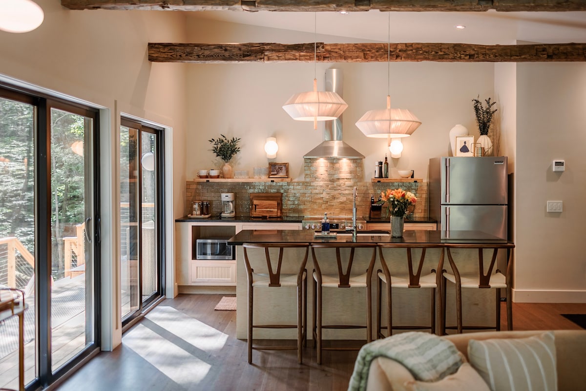 Niché au cœur des Catskills et à seulement 2,5 heures de route de New York, ce lieu est idéal pour une escapade automnale où vous pourrez renouer avec la nature et profiter de la beauté sereine de la saison. Ce joyau historique a récemment fait l'objet d'une restauration, mariant son héritage de scierie avec des luxes contemporains, dont un thermostat Nest, des haut-parleurs intelligents, une entrée sans clé et une connexion wifi rapide. La construction originale à colombages apparents et le design d'inspiration scandinave créent une atmosphère unique et chaleureuse.