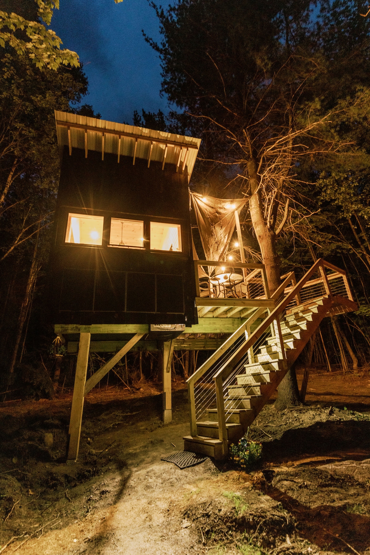 Notre cabane dans les arbres est un havre de bien-être, de paix et d'élégance. Dans notre superbe cabane moderne, nous avons amené la relaxation à un tout autre niveau. Entourés de nous, il n'y a que des bois et de la faune. Une expérience à ne pas manquer. Mettez votre film préféré sur le projecteur, devenez zen dans la véranda confortable, écoutez de la musique sur le tourne-disque ou prenez une serviette et dirigez-vous vers le jacuzzi en cèdre personnalisé. Il est temps de créer des souvenirs inoubliables. Bienvenue dans un petit coin de paradis.