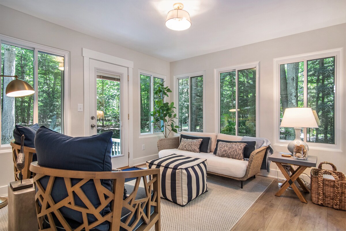 Évadez-vous dans cette maison en bord de mer entièrement rénovée de 1 617 pieds carrés avec 135 pieds de façade privée sur le lac Michigan. Profitez de couchers de soleil à couper le souffle depuis la cuisine américaine ou le salon à plafond voûté avec de grandes fenêtres. En été, détendez-vous sur la plage privée ; en hiver, installez-vous confortablement près de la cheminée après avoir admiré de superbes formations de glace. Entourée de chênes, cette retraite sereine allie commodités modernes et beauté de la nature pour une expérience d'escapade inoubliable toute l'année.