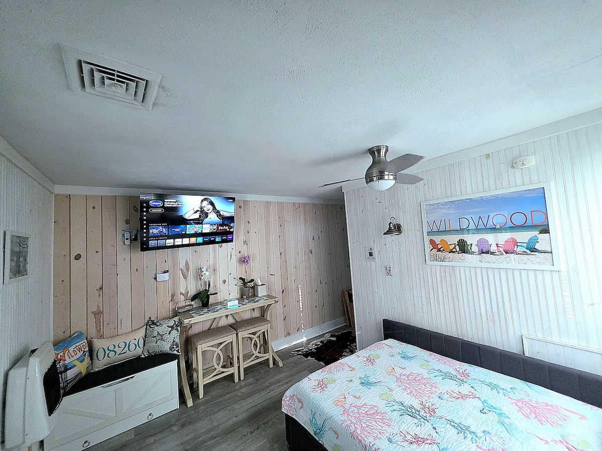 RÉCEMMENT REPENSÉ AVEC UNE AMBIANCE D'INSPIRATION RÉTRO À WILDWOOD ! À QUELQUES PAS de la plage, à 5 minutes en voiture de la promenade et à 10 minutes de Cape May ! Ce studio soigneusement repensé présente maintenant un design nostalgique d'inspiration rétro de Wildwood mélangé au confort moderne. Avec un couchage pour 4 personnes (1 NOUVEAU lit Queen Murphy et 1 NOUVEAU canapé-lit), il est parfait pour les couples ou les petites familles à la recherche d'une escapade élégante en bord de mer. Profitez d'une vue imprenable sur l'océan depuis votre chambre ! Suivez-nous @ thecrestbeachhouse