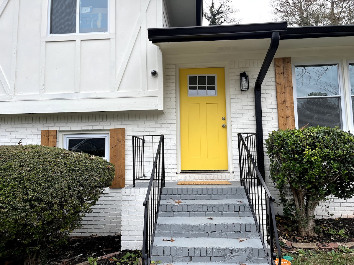Très mignonne maison nichée d'environ 1200 pieds carrés qui est assez proche de tout, mais assez loin pour la vie privée ! Auto-enregistrement via la saisie par clavier Appareils en acier inoxydable, y compris laveuse et sécheuse Intérieur et extérieur récemment rénovés WiFi avec HBO 70 dans Smart Television Espace de bureau privé Cour privée spacieuse Matelas en mousse à mémoire de forme À moins de 10 milles de l'aquarium de Géorgie, du stade Mercedes Benz, du centre-ville, etc. Articles de toilette de base fournis tôt/ tard - Arrivée/Départ