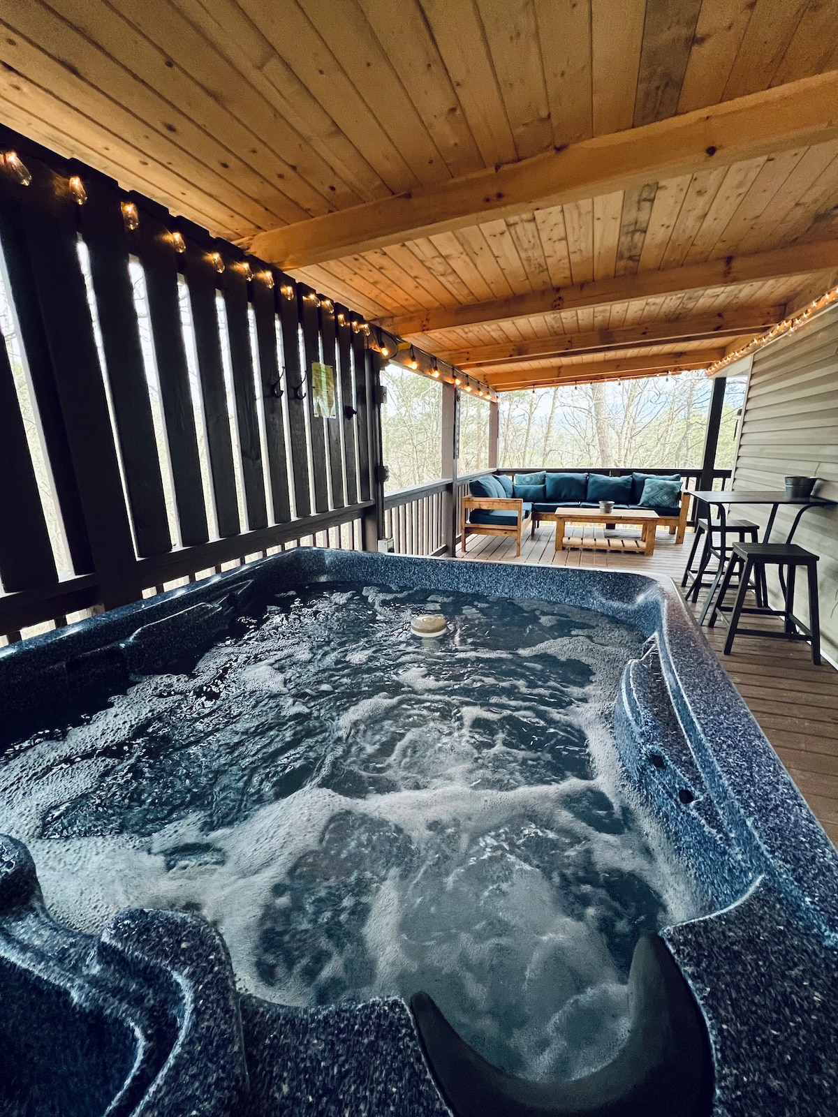 Découvrez cette confortable cabane de 2 chambres ! Chaque chambre possède sa propre salle de bain privée. Parfait pour les couples ou une petite famille. Avec un emplacement PRIVILÉGIÉ, un JACUZZI privé, un foyer au gaz, une cuisine entièrement approvisionnée, un lave-linge et un sèche-linge, une connexion Wi-Fi haut débit et de nombreuses places de stationnement privées, vous aurez tout ce dont vous avez besoin pour un séjour relaxant et mémorable. Animaux acceptés avec une cour arrière clôturée pour vos bébés à fourrure. Arrivée autonome pour plus de commodité. Réservez dès maintenant et faites des souvenirs dans les Smokies !