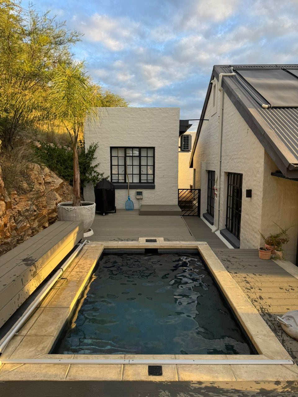 Welcome to your ultimate luxury retreat - a stunning mansion with breathtaking views into Namibian nature, that will captivate you from sunrise to sunset. This beautiful property features 4 bedrooms, 3 bathrooms, a gym, a pool and a fully equiped kitchen. A great garden with 3 terraces, seamlessly blending with the horizon and offering a serene space for relaxation. The decor features carefully curated furnishings and art. Experience the pinnacle of refined living in this exceptional residence.