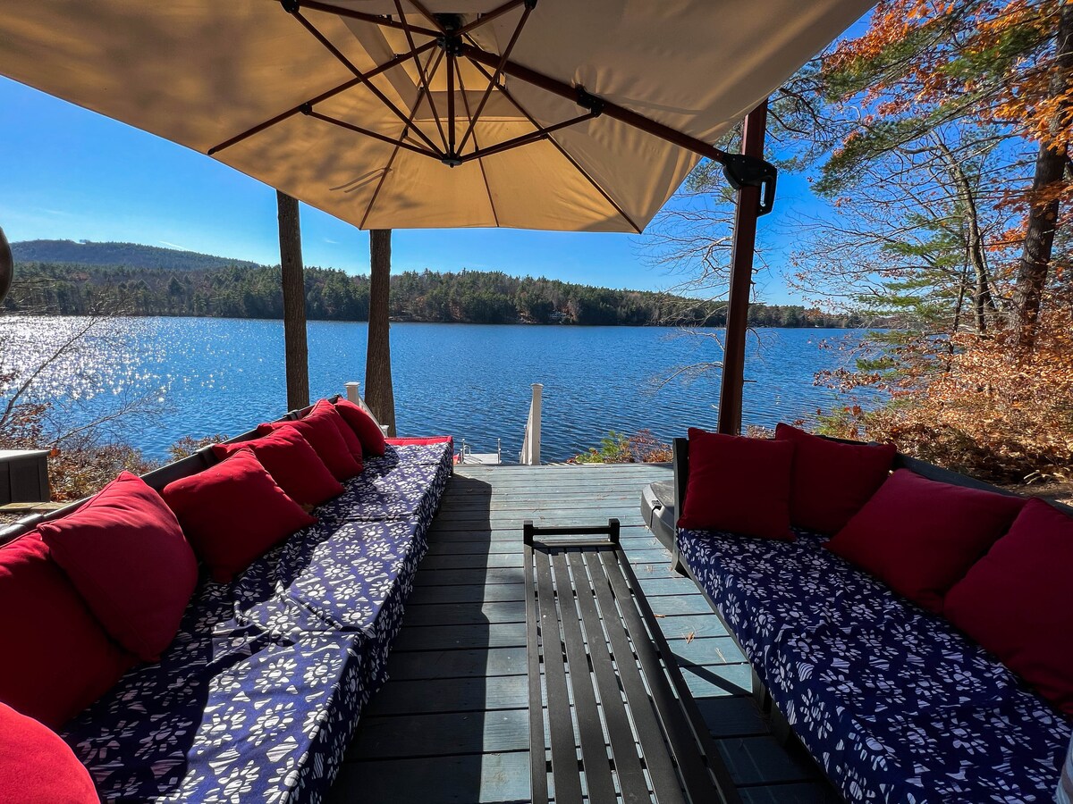 Maison contemporaine au bord de l'eau à Rust Pond avec vue pittoresque sur le lac sous tous les angles et plusieurs terrasses. Votre maison de vacances dispose de la climatisation centrale pour les journées chaudes et d'un foyer au gaz confortable et du chauffage central pour les nuits fraîches. Rust Pond est un lac oligotrophique avec d'excellentes possibilités de baignade, de planche à pagaie, de kayak, de pêche, etc. La maison offre de l'intimité dans un cadre paisible au bord du lac, mais se trouve à seulement 10 minutes des restaurants du centre-ville de Wolfeboro, des restaurants de la ferme à la table, des galeries d'art et des boutiques.