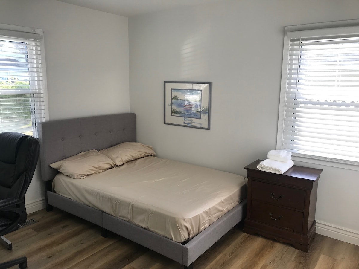 Sous-sol entièrement rénové et mis à jour avec un ensemble complet de fenêtres et de lumière du soleil. La maison est dans un quartier très agréable et sûr. Sous-sol accessible à pied avec entrée privée. Beaucoup de stationnement. Non fumeur. Tous les services publics et le Wi-Fi sont inclus. • Superficie totale : 800 pieds carrés. • Une chambre avec placard ; • Salle de bain complète • Entièrement meublé ; • Cuisine • Coin repas • Sous-sol accessible à pied – au-dessus du sol (entrée privée) • Pas de four • Pas de lave-vaisselle • Pas de lave-linge ni de sèche-linge • Beaucoup de stationnement ; • Interdiction de fumer.