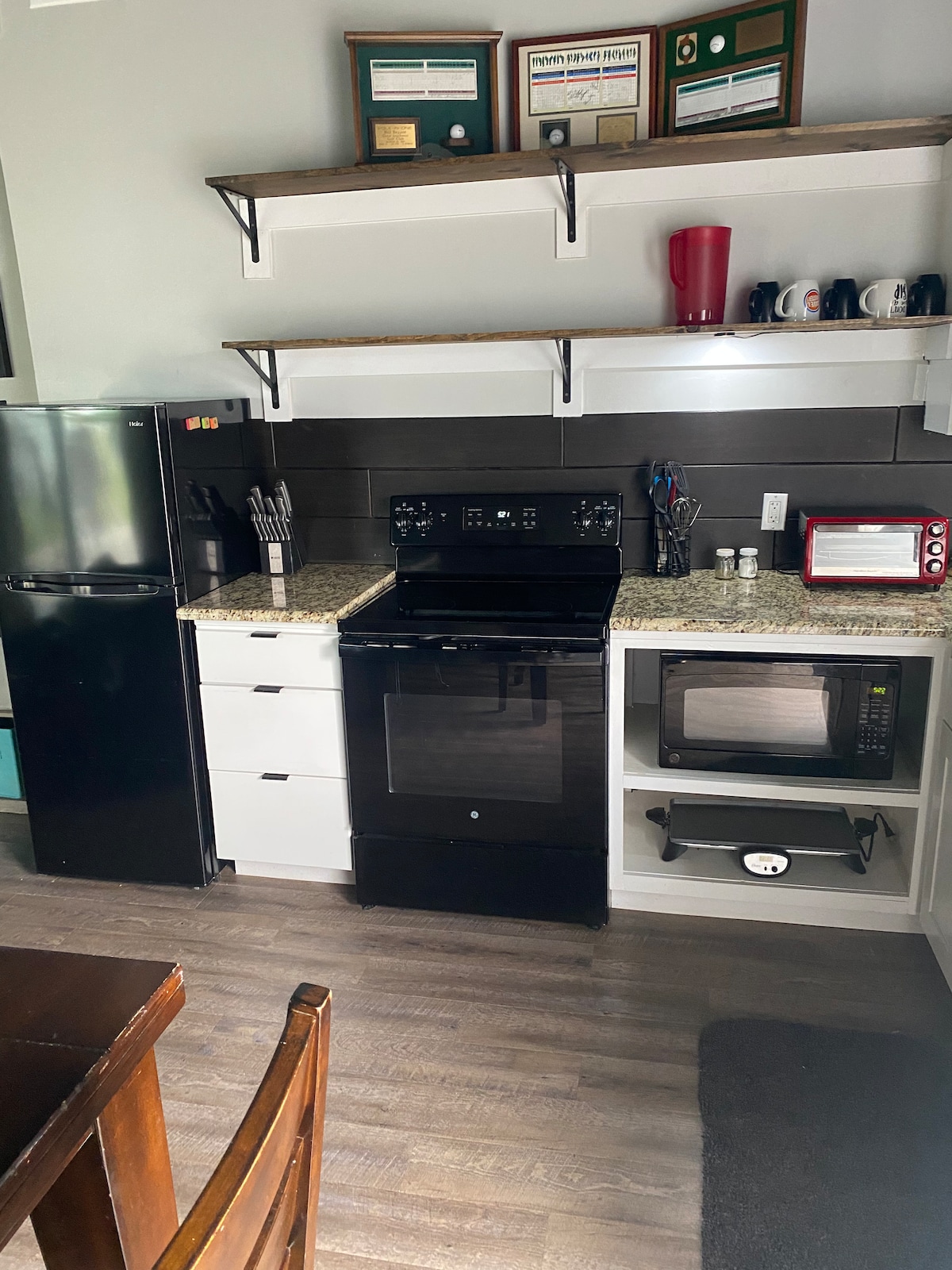 Si vous cherchez à vous évader pour une nuit, un week-end ou même une semaine de repos et de détente, de beaux couchers de soleil et un environnement paisible et calme, alors c'est l'endroit idéal. Cette petite cabane confortable se trouve à seulement 15 miles à l'ouest de Graham TX. Le chalet est entièrement meublé, peut accueillir 4 personnes, lit Queen Size dans le loft et lits jumeaux/superposés complets, nous offrons de l'eau en bouteille et du café gratuits, une connexion Wi-Fi gratuite, la télévision par satellite avec toutes vos chaînes préférées, un réfrigérateur double, un four à micro-ondes et une cuisinière complète, des casseroles, des poêles et de la vaisselle.