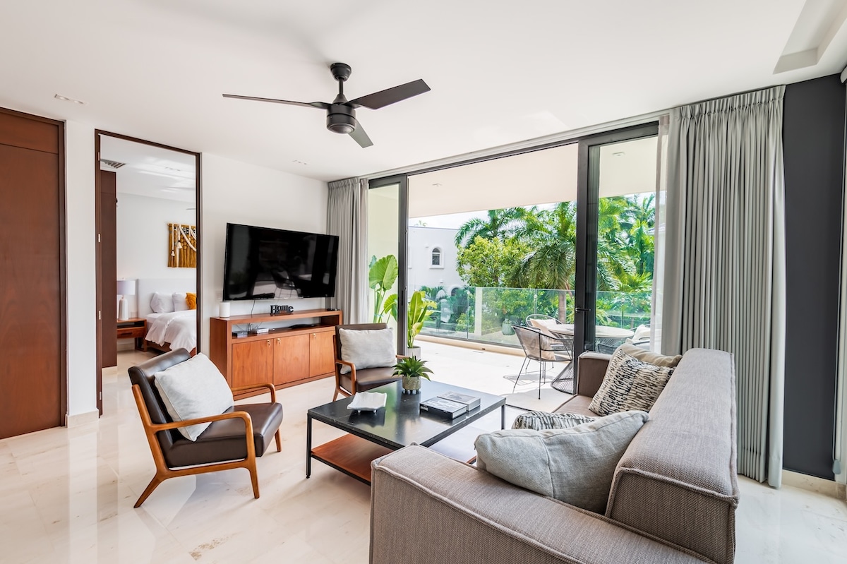 Meilleur emplacement de Puerto Aventuras ! L'appartement est directement en bord de mer avec une vue imprenable sur les Caraïbes. Regardez les couchers de soleil depuis le balcon ou la terrasse à l'étage. Belle plage de sable blanc calme. Deux piscines en bord de mer. Les restaurants et les magasins sont juste en face. Complexe de condos Chac Hal Al avec sécurité gardée 24h/24. Internet/WiFi haut débit par fibre optique fiable.