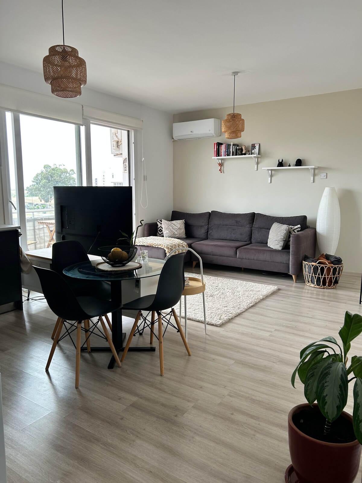 Bienvenue dans notre appartement chic et moderne d'une chambre ! Cet appartement flambant neuf, conçu avec goût, offre une maison confortable et élégante loin de chez vous dans un quartier calme, à quelques minutes en voiture du centre-ville de Larnaca et à distance de marche de la plage. Profitez du confort d'un salon élégant et détendez-vous sur le balcon privé avec de belles vues latérales sur la mer - parfait pour un café du matin ou une soirée de détente. Idéal pour les courtes escapades et les séjours prolongés.