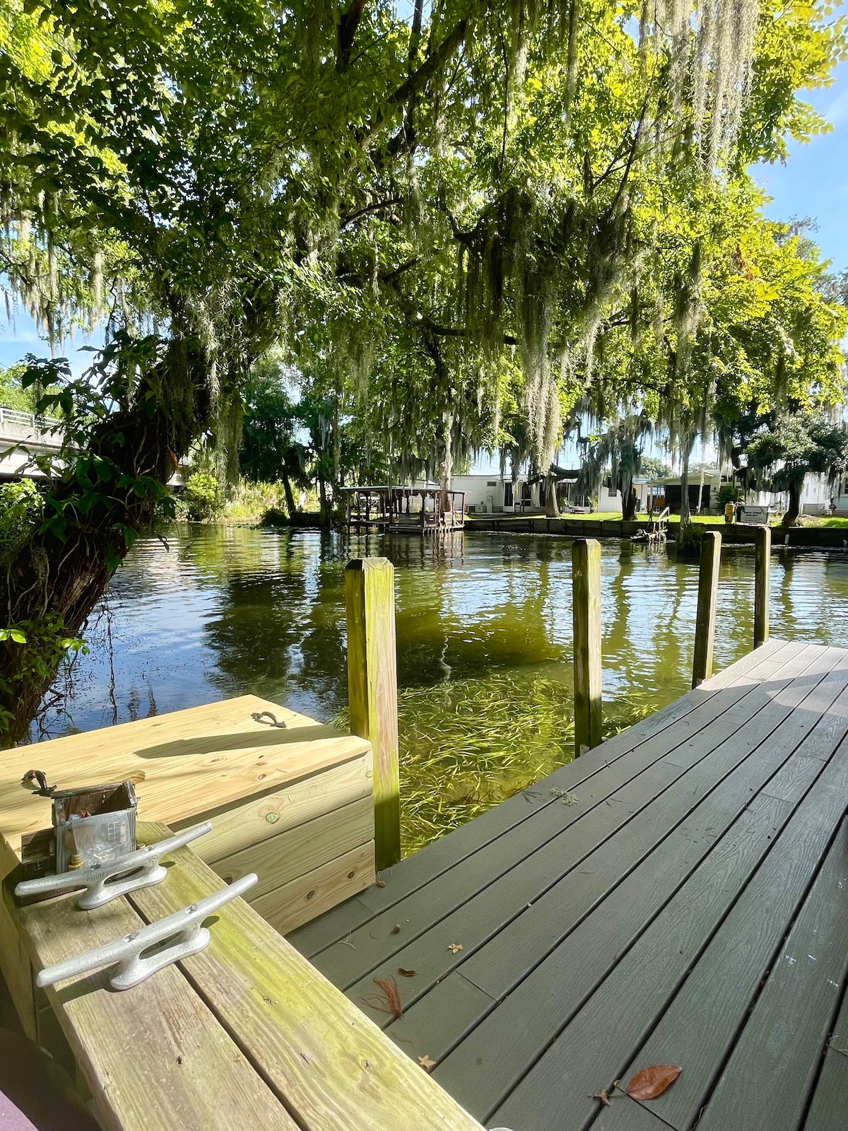 Welcome to your peaceful Getaway on the Water. Whether you or your group are visiting the Villages, or just need a peaceful getaway to recharge, this is the place!There's something for everyone! Paddleboard or Kayak (provided) the beautiful canal to either lake. Enjoy your morning coffee or evening cocktail in nature on the dock. Bring your boat/ jet ski or rent one from Eaton's Beach Aquatic sports, they also offer sunset cruises and water taxi to Eaton's Beach restaurant right from our dock!