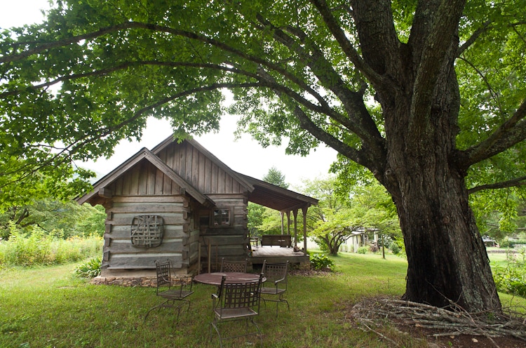 Cabane artisanale, avec vue sur les montagnes Blue Ridge