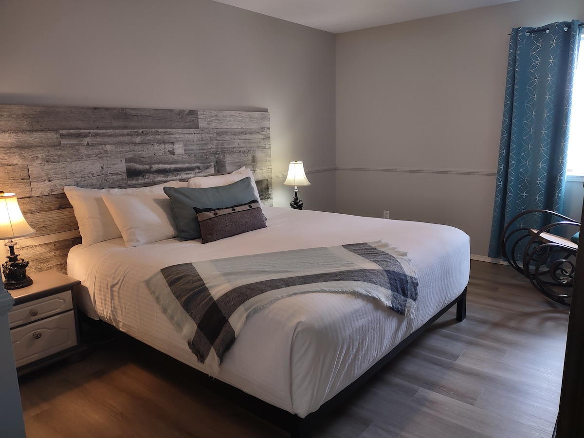 Cette location au rez-de-chaussée a été entièrement améliorée, avec des finitions haut de gamme pour passer un séjour agréable et luxueux. Y compris 3 chambres spacieuses et 1 grande salle de bain, jusqu'à 6 personnes peuvent profiter de ce bel espace pendant leur séjour dans les montagnes Rocheuses ! *Veuillez noter que cette propriété n'est pas équipée pour accueillir des bébés ou des enfants de 12 ans et moins, conformément aux exigences de sécurité d'Airbnb.*