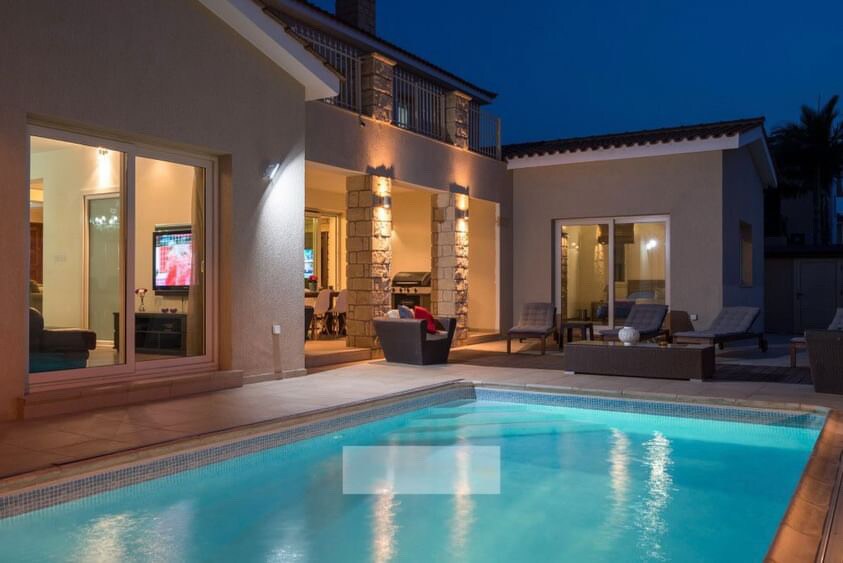 Notre villa moderne de luxe de 4 chambres peut accueillir jusqu'à 8 personnes et est idéale pour ceux qui recherchent détente et paix. La villa est située au centre de Paphos, à proximité des hôtels, directement en face de la mer Méditerranée, ce qui permet aux voyageurs de profiter d'une baignade relaxante à la plage ou à notre piscine commune isolée. La propriété dispose d'une licence de l'Office du tourisme de Chypre.