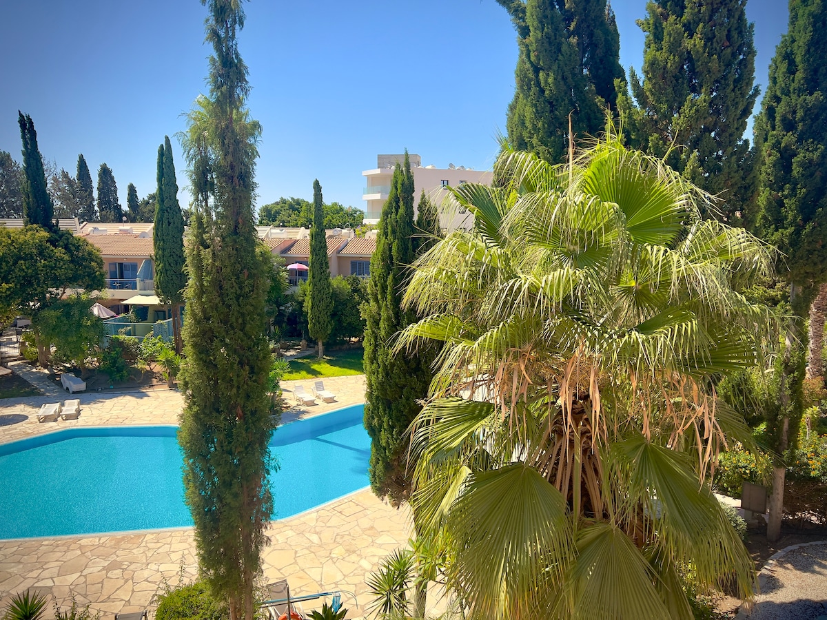 Entrez dans la sérénité ! Évadez-vous dans une cachette ensoleillée sur une colline tranquille. Détendez-vous près de la piscine, profitez du soleil et profitez d'une vue imprenable sur la mer et de couchers de soleil dorés. À seulement 15 minutes en voiture de Paphos, nos deux charmants studios sont le point de départ idéal pour explorer. Les plages, les sentiers naturels, le port, le lagon bleu et la vieille ville de Paphos sont tous à 15-30 min. en voiture. Wi-Fi gratuit, parking, une place de village avec des tavernes et un bar à vin, à seulement 4 minutes en voiture. La voiture est indispensable. Piscine ouverte toute l'année (non chauffée).