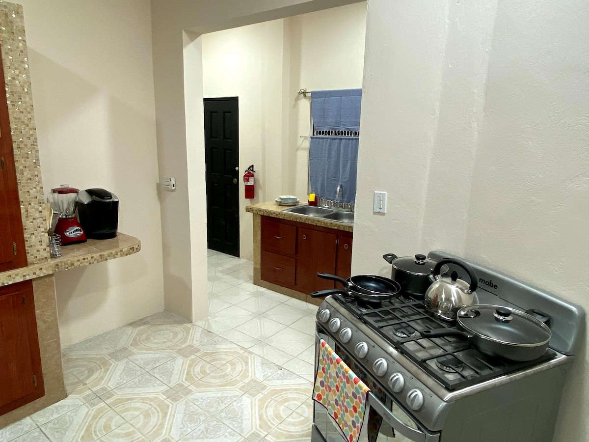1 Appartement entièrement meublé avec lit Queen Size. 2 chambres individuelles 1 chambre ont 2 lits pleine grandeur et l'autre chambre ont 1 lit pleine grandeur et un lit double toutes les chambres équipées de climatisation et petit réfrigérateur Wifi. Shanghai Chinese Restaurant 4 min à pied et Belizean Restaurant Anna' s Kitchen 5 min et Fresh furit and vegetables 5 min, The Gym lounge & sports bar 8 min, 10 min to Hi 5 Pub/Club, 13 min to Najil Mayab Restaurant, Heritage Bank ATM 4 min. Café et thé inclus.