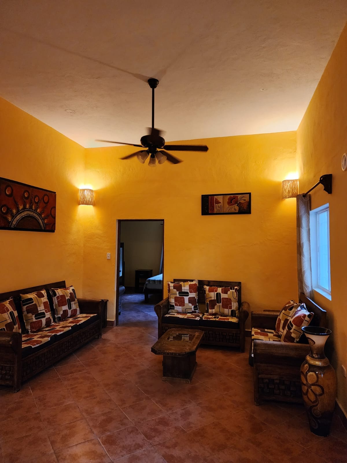 This tidy house, just two blocks from the convent, mercado, and Centro, is perfect for large families/groups, as there are 3 beds and two hammocks in the huge bedroom, and three hammocks in the dining room, and now a 2nd toilet and shower out back. There is an AC in the living room and in the bedroom. There is good internet, and a 42" flat screen for streaming videos. Breakfast includes eggs, bread, milk, cheese, cereal, jam, butter, coffee and tea. Huge secure back yard for your pets to roam.