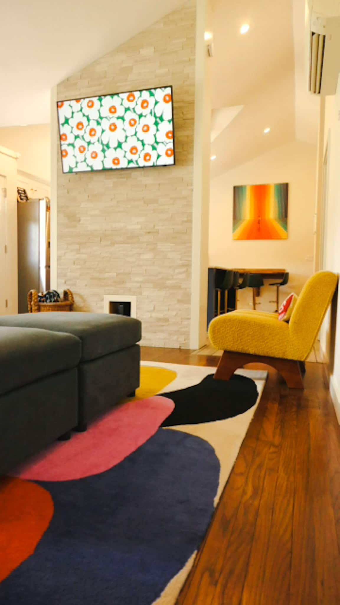 L'objectif est que vous vous détendiez, rechargiez vos batteries, profitiez et respiriez. Nous offrons un JACUZZI privé pour 3 personnes, une douche chaude extérieure saisonnière et un foyer de cheminée, un SAUNA infrarouge, une baignoire autoportante de 72 pouces pour une expérience de spa ULTIME. Lit King Size avec sommier réglable et vibrant. La maison confortable de 600 pieds carrés est équipée de tout ce que votre cœur peut désirer. Design artistique à chaque coin de rue. Balançoires BOHO sur le porche privé. Nous sommes contigus à un terrain de 13 ac avec des sentiers de marche et de randonnée à l'arrière.