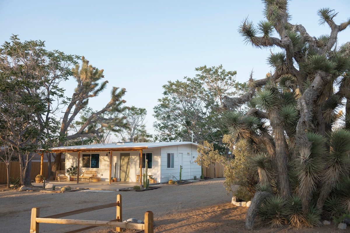 Tap into "chill" at @Mojave_Lofi, a private, serene, desert retreat just 25 mins from Joshua Tree National Park. - XL Hot Tub & Above-Ground Swimming Pool (seasonal) - Dog Friendly w/ bowls & waste bags provided - 2.5 acre lot with fully fenced yard - Cal-King Beds - Grill & Fire Pit - Fully Stocked Kitchen - Game Room with Pool & Ping Pong - Record Collection - Al Fresco Dining - Telescope for stargazing - Washer & Dryer - La Copine, the best restaurant in the high desert, is just steps away!