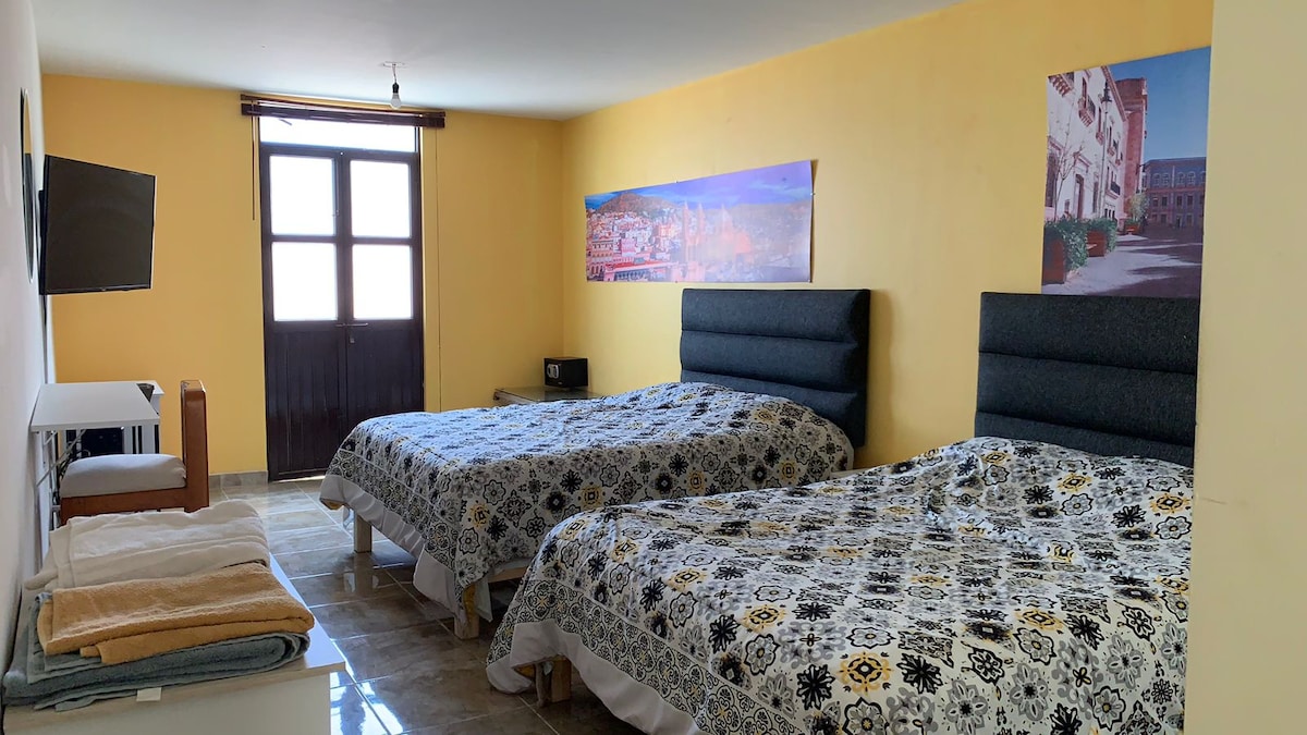 Profitez d'une chambre confortable située à 50 mètres de la cathédrale avec télévision, réfrigérateur, micro-ondes et cafetière. Hébergement idéal pour jusqu'à trois personnes. Lors d'événements tels que le festival culturel, le folklore ou le théâtre de rue, c'est une destination parfaite, il est proche de tous les points touristiques de la ville. À quelques pas de la cathédrale, de la Plaza de Armas, du théâtre Calderón et de l'avenue Hidalgo. Un hébergement conçu pour votre confort maximum, tout en conservant le style historique du bâtiment.