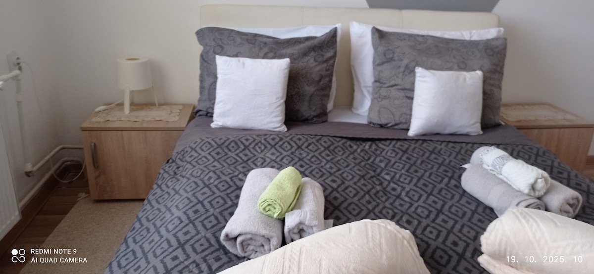 We promote our lovely fully modernized house, child friendly (fenced huge garden), 2 sleeping rooms, large main room with 2 sleeping couches, kitchen, bathroom with bath. 5 minutes walk from aquapark. Wifi. Off season price negotiable.