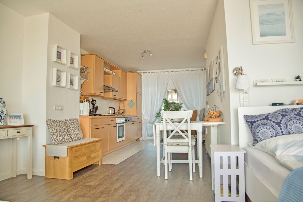 Studio 34 m², salon avec cuisine, chambre. Le centre de Zetel avec ses commerces, ses boulangeries, sa boucherie, ses restaurants est à 10 minutes à pied. Zetel est situé au milieu de l'expérience naturelle du sud de la Frise, près de la mer du Nord, et offre des journées de détente dans la magnifique diversité entre la forêt et la mer.