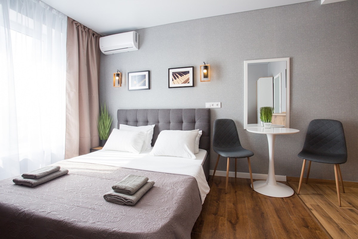 Une magnifique fenêtre donne sur le centre. Nouveau bâtiment ! Je louerai mon appartement tous les jours dans le centre. 5 Grekovskaya Street est un carrefour avec le remblai du gymnase (à côté du nouveau cirque), 15/15 étages. À 5 mn de la station de métro Levada (avenue Gagarin) et 10 mn de la station de métro Ploshchad Konstitutsii. La dernière rénovation en 2021 avec des meubles et des appareils confortables. Joli matelas. Parking, wifi, climatisation, eau toujours chaude. De rien !