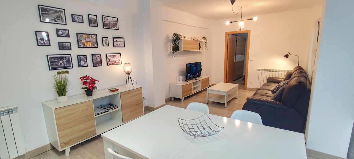 Appartement lumineux et très pratique, avec place de parking incluse dans le prix. Il se compose de 2 chambres et 1 salle de bain, ainsi que d'un salon-salle à manger-cuisine. Il est à 15 minutes à pied du centre-ville, avec la possibilité de prendre les bus des lignes 21, 26 et 28 toutes les 5 minutes qui vous mèneront au centre et à la vieille ville. Vous trouverez des magasins et des bars dans la région. L'heure d'arrivée est de 15h00 à 22h00 et le départ avant 12h00 Endroit confortable et calme pour profiter de Saint-Sébastien, avec des vélos !